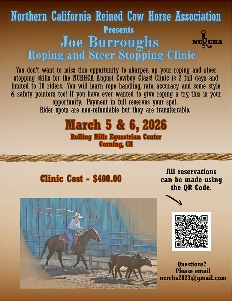 Don’t miss this chance to sharpen up your ropin’ and steer stoppin’ skills for the NCRHCA August Cowboy Class! Clinic is 2 full days and